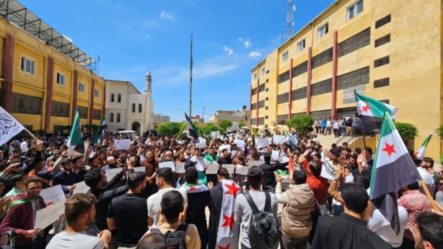 نظم طلبة جامعيون وقفة احتجاجية، في ساحة جامعة “حلب في المناطق المحررة” في مدينة اعزاز بريف حلب الشمالي.