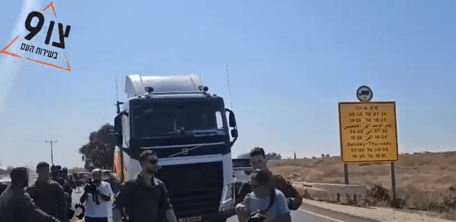 ووصل حوالي 15 مستوطنا متشددا إلى منطقة كرم أبو سالم للاحتجاج على دخول شاحنات المساعدات إلى قطاع غزة.