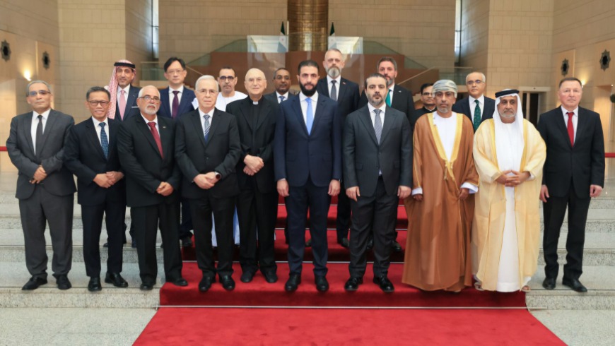 التقى الرئيس السوري أحمد الشرع، عدداً من سفراء الدول العربية الشقيقة والصديقة، بحضور وزير الخارجية والمغتربين أسعد الشيباني.